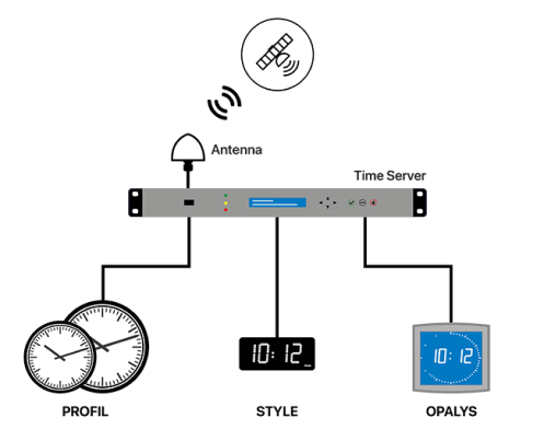 Bodet proporciona servidores de tiempo NTP (Network Time Protocol) y sincronización por GPS para garantizar que todas las redes y dispositivos de una instalación operen con la misma referencia horaria. Estos sistemas son ideales para infraestructuras críticas, redes informáticas y telecomunicaciones.