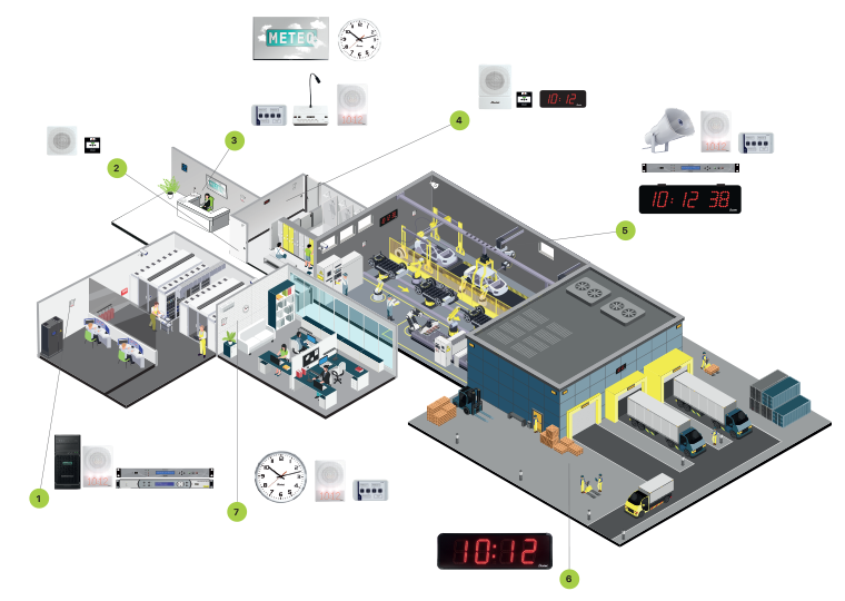 Nuestro Partner Bodet ofrece una gama de sistemas avanzados de sincronización horaria que combinan tecnología de vanguardia y facilidad de integración en distintas infraestructuras. Sus principales soluciones incluyen: