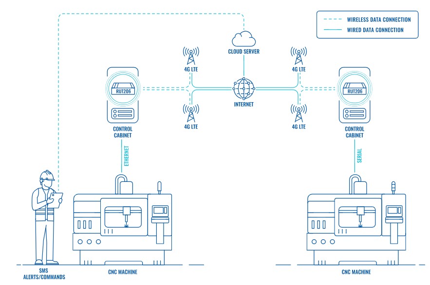 El nuevo router celular de Teltonika Networks brilla en escenarios donde la conectividad es crítica. Entre sus aplicaciones más representativas sobresale la integración de maquinaria CNC, ya que puede vincular de manera cohesionada equipos de distintas generaciones permitiendo la comunicación M2M, una sólida conectividad de red inalámbrica y compatibilidad sin fisuras para optimizar la producción.