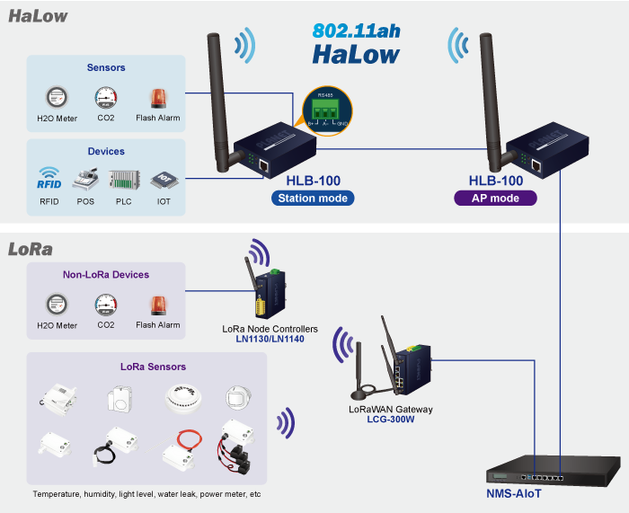 - Gestión eficiente de IoT con NMS-AIoT: la combinación del HLB-100 con la plataforma NMS-AIoT forma una potente solución para implementaciones IoT de gran alcance. Con una cobertura inalámbrica de hasta 1 km, el HLB-100 conecta varios dispositivos IoT para centralizar la monitorización y la gestión de datos. Las empresas pueden optimizar actualizaciones de estado, alertas y análisis en tiempo real desde una interfaz integral para aplicaciones como edificios inteligentes, automatización industrial y gestión energética.