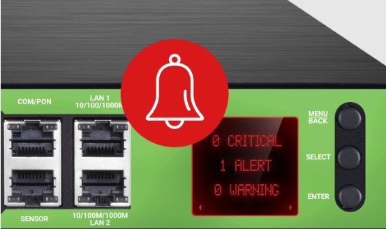 - Alertas en tiempo real: la pantalla LCD se ilumina en rojo cuando se registra un evento crítico, de alerta o advertencia.