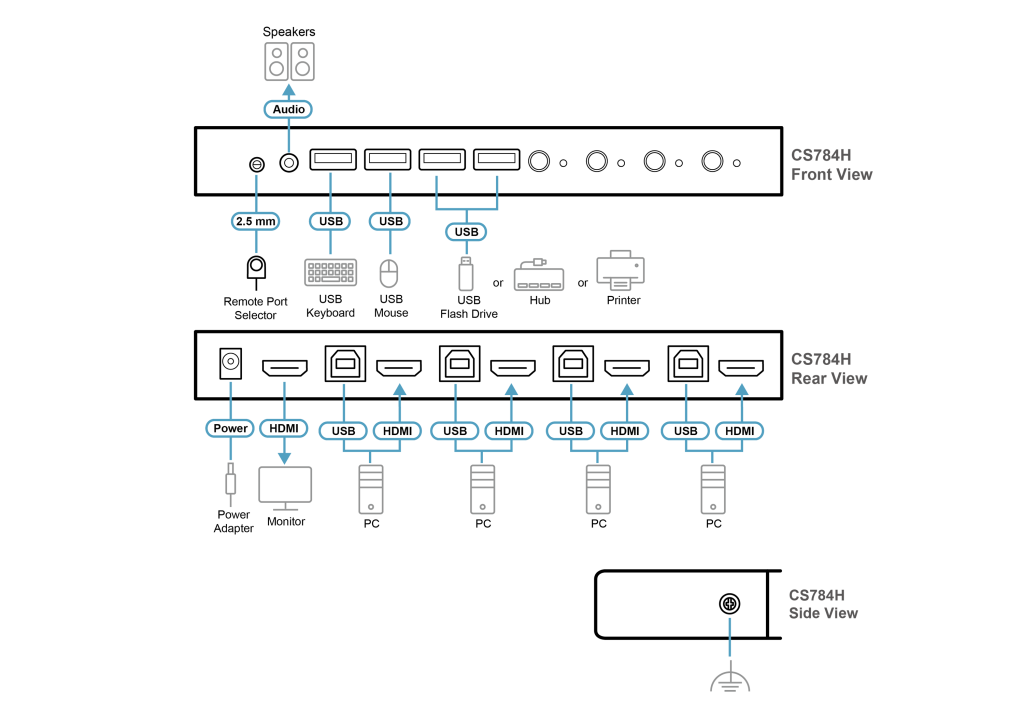 El CS784H está especialmente indicado para entornos SOHO (Small Office/Home Office), salas de control, estudios de creación audiovisual, puestos de streaming y configuraciones de teletrabajo donde se precise centralizar el control de varios equipos con una fidelidad de vídeo inmejorable, el mínimo cableado y una gran comodidad de uso.